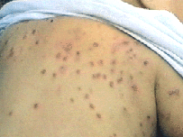 三、继发感染:由于剧痒搔抓,可引起出血或继发感染,导致顽固性皮炎、湿疹、脓疮、毛囊炎、肾炎等并发症.【推荐阅读:疥疮发病原因 】