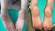张大妈患上“手足癣”是几年前的事,如今越来越严重了,原来只在脚后跟上,接着蔓延到整个脚,后来手也开裂了。由于“手足癣”见水见风就痛,这给 张大妈的日常生活造成诸多不便,几乎每天都要扔一双袜子。 糟糕的是,这种病很难根治,张大妈也去附近卫生院看过,尽管天天用药水浸泡,但效果并不明显。 家里得病的还有大妈的女儿。