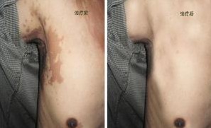 我院专家把患者的皮屑以10%氢氧化钾液直接涂片检测,发现致病菌主要是糠秕酵母菌。根据检测结果,诊断为:汗斑(花斑癣),属真菌感染。针对病情采 用 “药物微波渗透疗法”,并制定了一个适合他个人的治疗方案,内服特色中药,配合中药外洗,辅助西药治疗,强力杀菌。这些药都不含任何的激素,对机 体无任 何的副作用,安全可靠。