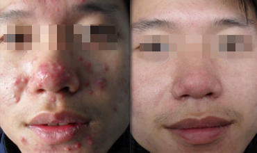 治疗方案:眼看也到谈婚论嫁的年纪了,这痤疮真是害人不浅,自己也是在网上到处找偏方,从未放弃过治疗.后来在一次同事聚餐时,兄弟部门推杯换盏之余,一位妹子给他介绍说:"南宁肤康医院,听说还不错的,你可以去试试."曾某第二周周末来到我院,梁主任诊断完病情,决定采用"中医排毒养颜综合疗法"进行治疗,同时根据医生的建议更加注重生活护理.治疗一周下来,脓包开始干瘪结痂,也没有新的痘痘出现;三个疗程之后,痘痘消失,痘印完全祛除,痊愈!至今未复发.