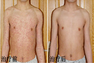 患者治疗:接诊的是梁主任,已经从事皮肤病临床治疗30多年,经验相当的丰富,一看胡军身上的红疹,梁主任就判断出胡军得的是荨麻疹,之前用过些药,导致了后来泛发全身,好在来的还算及时,梁主任采用了中医与中药熏蒸疗法,先对荨麻疹的病因过敏源进行系统检测查清病因,然后BICOM2000生物共振治疗系统有效调节机体免疫力。经过两个疗程的治疗,胡军身上的红疹明显消退,瘙痒症状也减轻了很多,然后梁主任又给胡军继续加了一个疗程巩固疗效,现在胡军已经有效痊愈了,老婆也是紧紧挎着他的胳膊一同来医院道谢,宛如热恋中的小情侣。