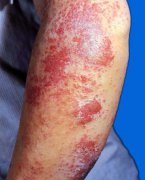 1、寻常型鱼鳞病:主要表现为四肢伸侧和躯干的燥性褐色菱形,或多角性鳞屑,上臂及大腿伸侧常有明显的毛囊角化性丘疹。发病率很高,其角化性鳞屑是数层角质细胞不脱落堆积所致,多于出生后数月出现,5岁左右 重,青春期后症状可能减轻但随着年龄的增大和治疗不当病情加重。