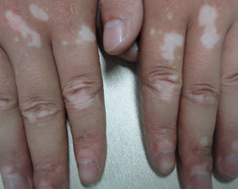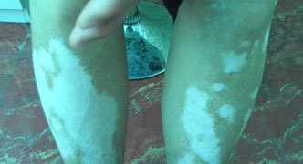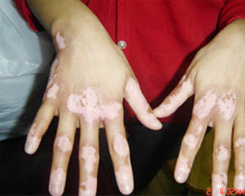 病程日久,皮损局限一处或泛发全身,或发生在外伤部位,白斑发展缓慢,白斑内毛发变白;舌暗红或有瘀点瘀斑,脉涩。