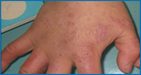症状皮损初为多数密集的粟粒大小的丘疹、丘疱疹或小水疱,基底潮红,逐渐融合成片。
