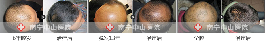 - 许先生,脱发10年了。许先生一直从事IT工作是公司的骨干精英,但由于长期非正常的作息时间,整日的熬夜,导致了脱发的严重脱落。试过了很多的治疗方式,都没有效果。一年一年过去了,脱发现象愈发严重,头发已变成了"地中海"。后来在朋友的介绍下,抱着试试的态度来到了南宁肤康医院,没想到治疗10天后,头皮不红不痒了,中间光秃的部位有一些小的绒毛出来了;20天后,绒毛越来越多,并开始长粗.多年的光秃的部分都长出头发了,许先生很是高兴,工作上生活上都如鱼得水!