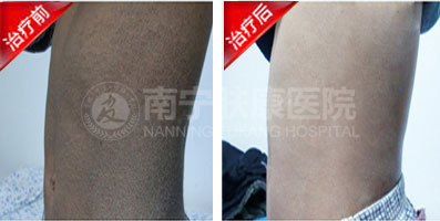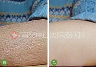 邵女士出生不到1岁时,小腹、四肢出现小水疱,微痒,找当地医生治疗经久不愈;2岁时,四肢、小腹及后背皮肤干燥、粗糙,掉灰色鳞屑,冬重夏轻,手也干枯如树皮。后来,经南宁肤康医院专家梁必孝教授的精心诊治,采用“激活免疫疗法”2个疗程治疗后,症状明显减轻。又经4个疗程治疗后皮肤鱼鳞斑纹消失,皮肤细腻光滑,让她做回了正常人。
