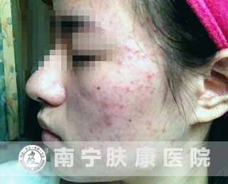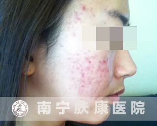 红色斑是因为原本长痘痘处,细胞发炎引起血管扩张。但是痘痘消下去后血管并不会马上缩下去,就形成了平平红红的红斑。