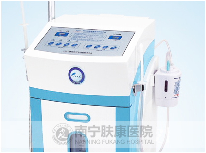 仪器简介: 南宁肤康医院引进 超声波雾化冷热喷治疗仪利用微波电脑控制器产生适合人体皮肤的 佳超声波频谱,激发水体(药液)产生接近水分子的极细雾化离子渗入人体皮肤表层,达到消炎、清洁皮肤的作用,能使蛋白质大分子的肽链切断,成为分子量较小的肽的气雾易于局部表面的吸收,渗透达到治疗作用.而且具有脂酶作用,使某些脂水解,因此可消化脓液、积血、坏死组织,起到创面净化,消炎消肿作用。 【详细】