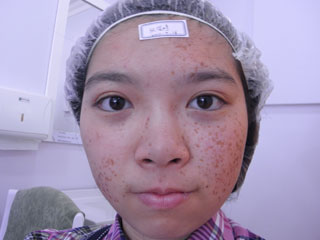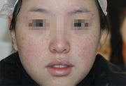 其实很多病人这个雀斑和黄褐斑分的不是特别清,其实这个分起来是很好分的,他就是雀斑的话基本上是比米粒要小的,针尖大小米粒大小,而且他是不连成一片的,他就是说点状存在的,而且……
