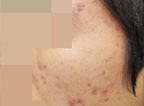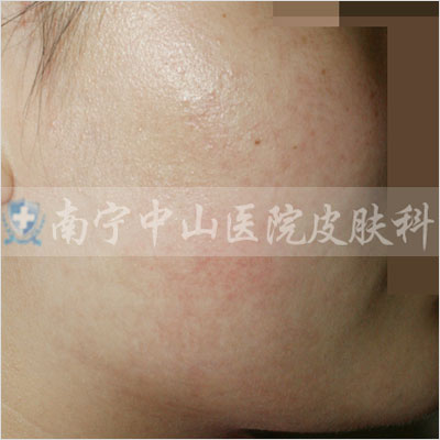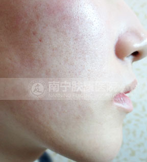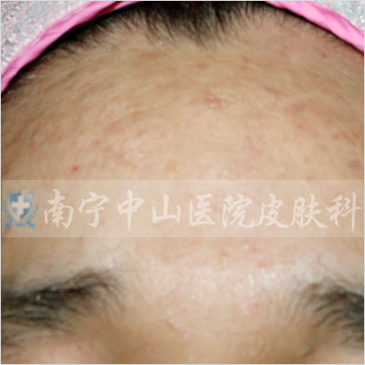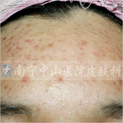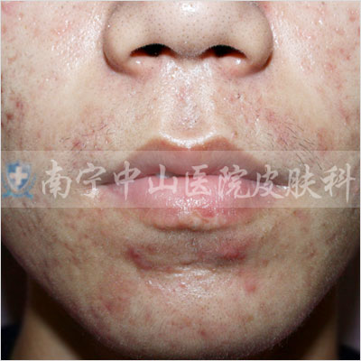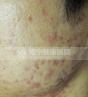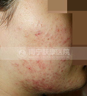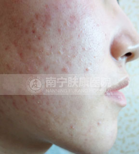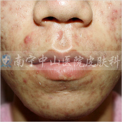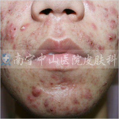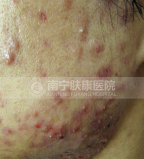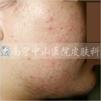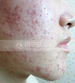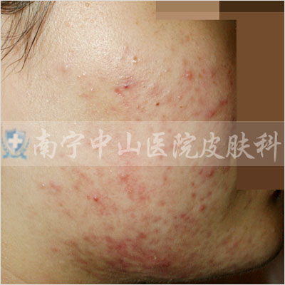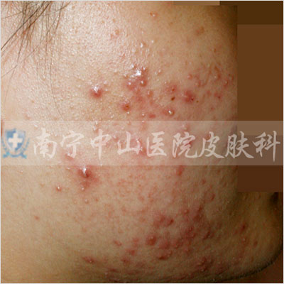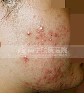 痤疮深红,影响整个面色,还没有出脓疱的状态。