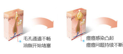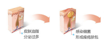 痤疮化脓,皮肤深层产生脓疱,是炎症开始严重状态,脓不出皮肤表面。