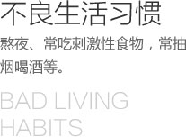 生活习惯: 熬夜、常吃刺激性食物,常抽烟喝酒等。
