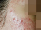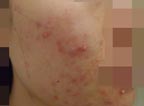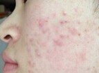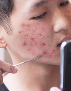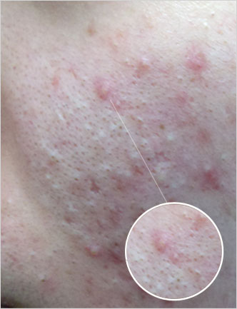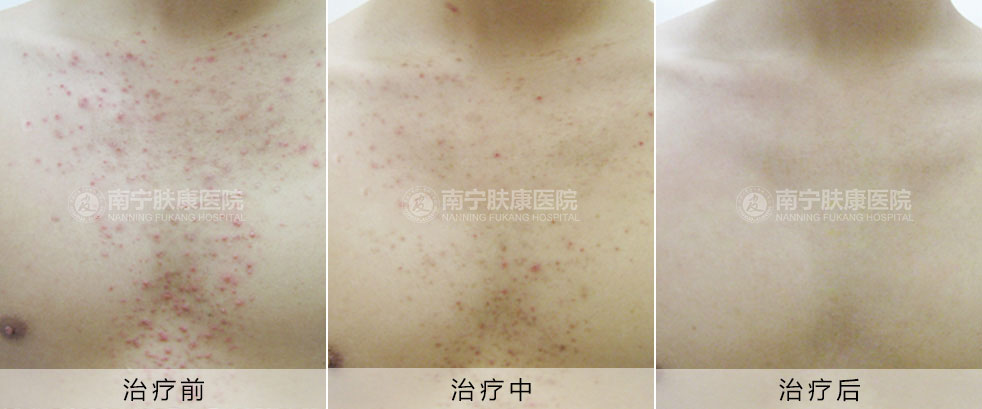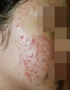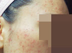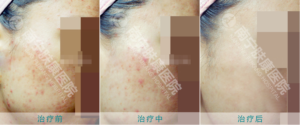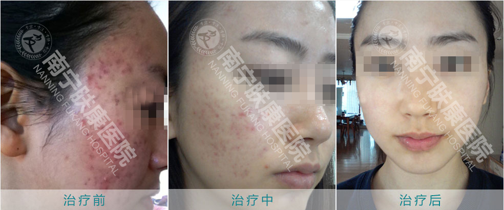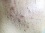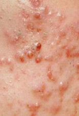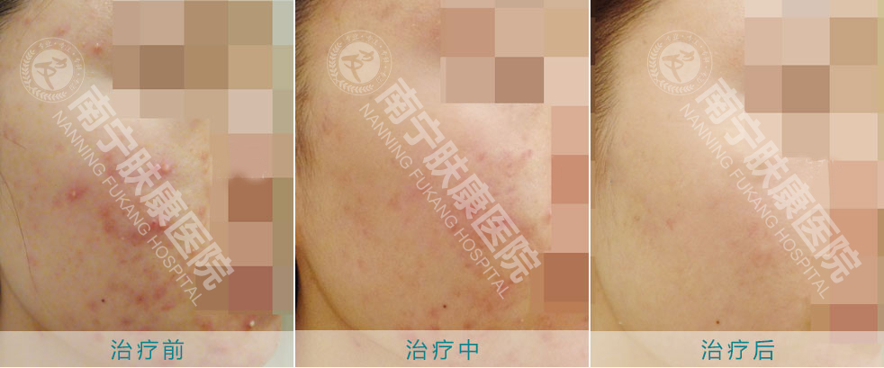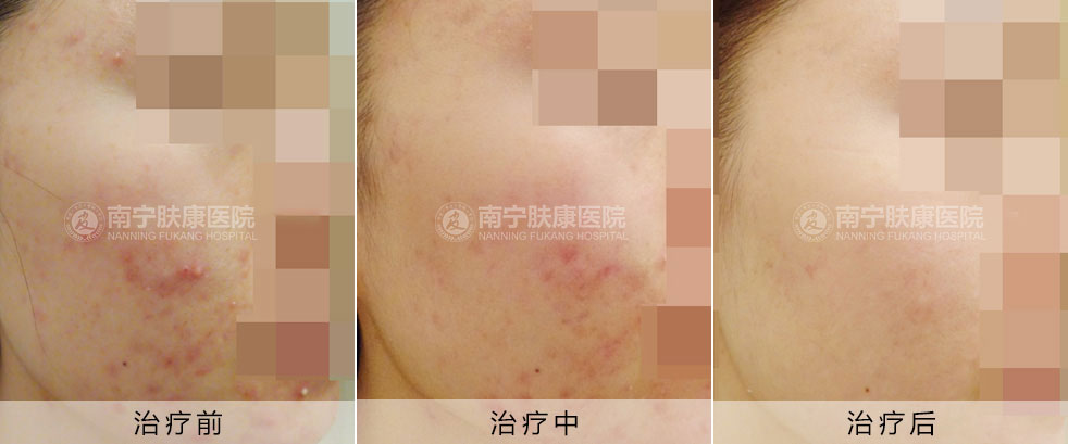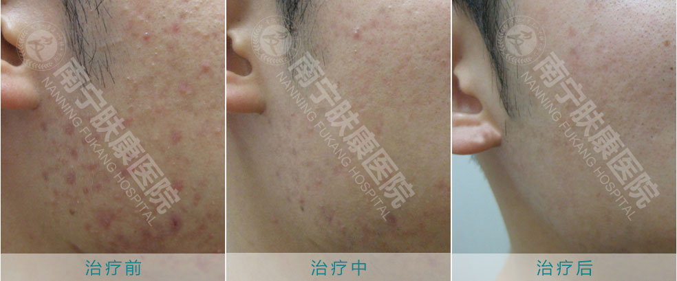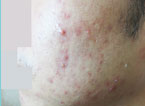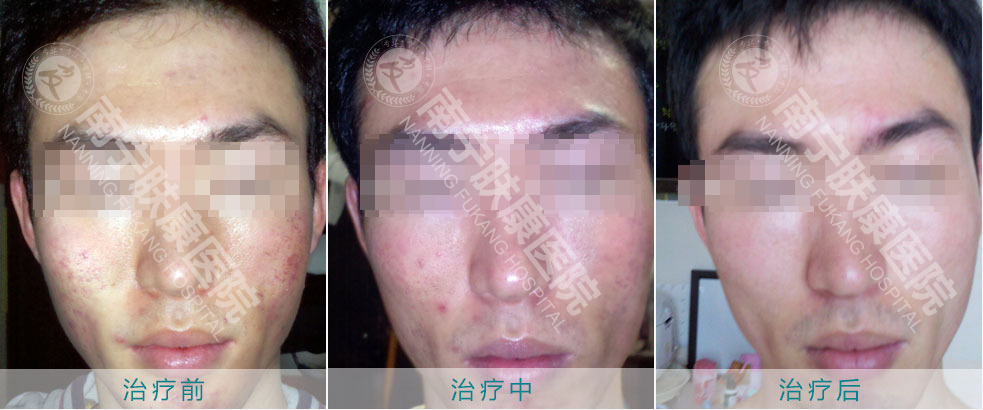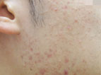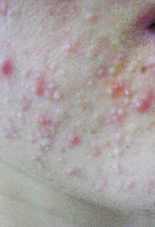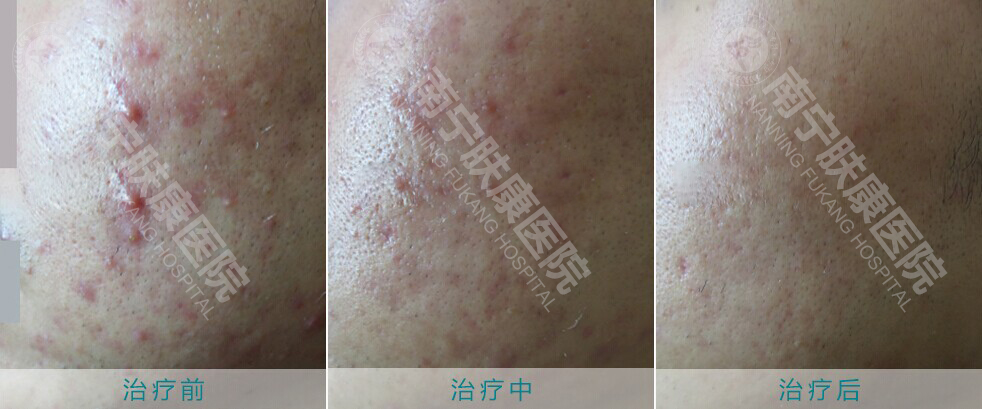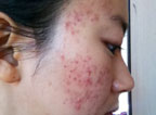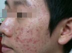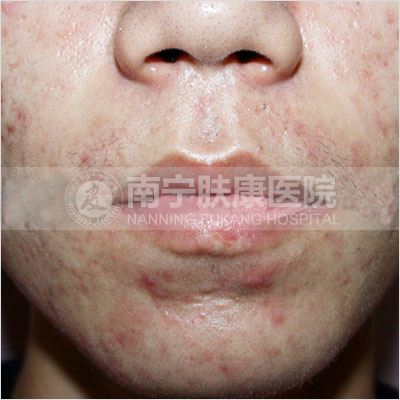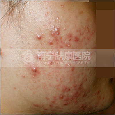 痤疮深红,影响整个面色,还没有出脓疱的状态。