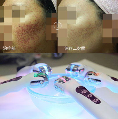 第①步:无菌微针将痘毒排出,中药倒膜镇静平缓受损痘肤,红蓝光杀菌消毒,修复肌肤。