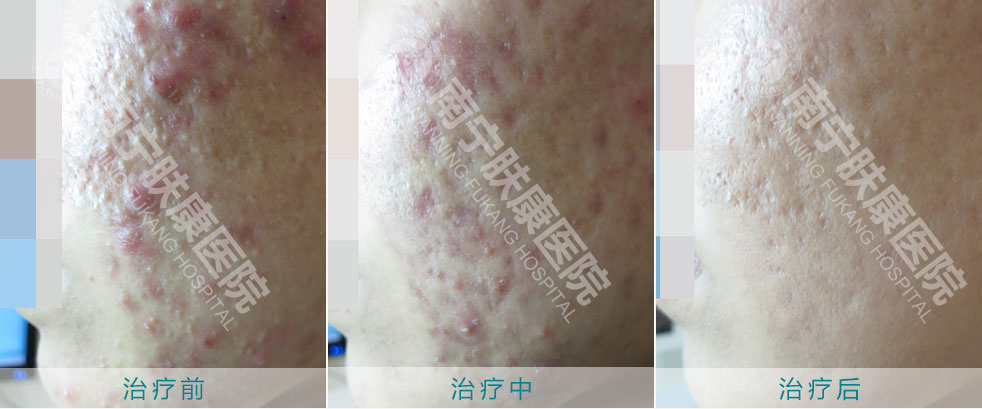 皮质块儿浸润较深,痤疮呈暗红色突出表面,之后可能会留下疤痕。