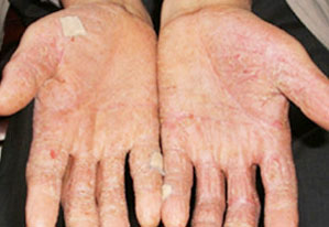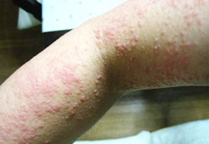 一般多发生于腿前或侧面,常由于下肢静脉曲张或外伤引起。常对称分布,皮损多为局限性棕红色斑,有密集的丘疹或丘疱疹,破后有糜烂,渗出,结痂,日久则皮损变厚,色素沉着,自觉瘙痒,易继发感染或形成溃疡,顽固难治。