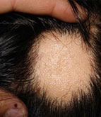 起初为少数圆形或椭圆形脱发区。边缘处常有一些松而易脱的头发,有折断与萎缩现象。如继续进展可成全秃。严重者可发展为普秃。
